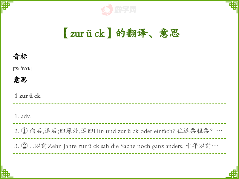 【zurück】是什么意思、字义解释