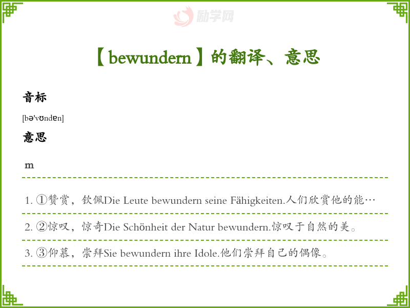bewundern德语的中文翻译、意思