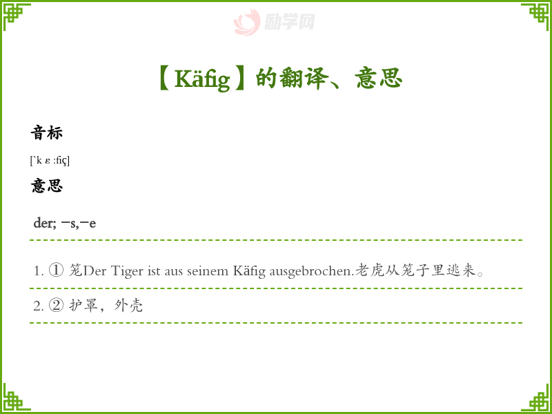 Käfig德语的中文翻译、意思