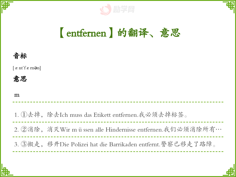 【entfernen】是什么意思、字义解释