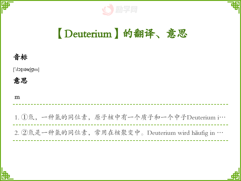 Deuterium德语的中文翻译、意思