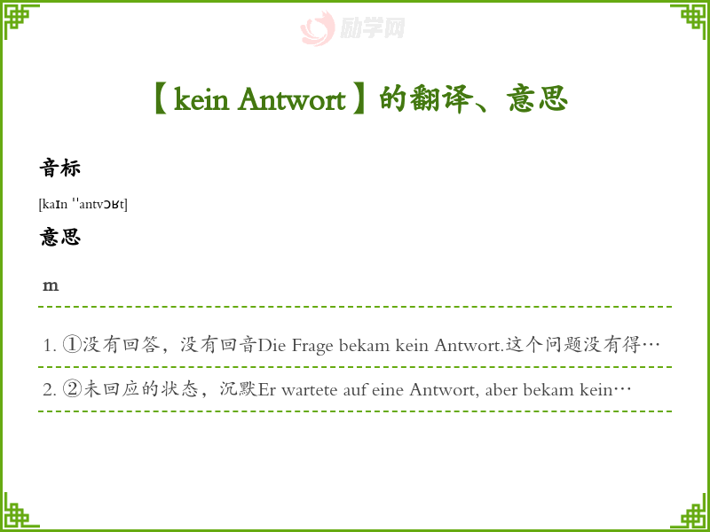 【kein Antwort】是什么意思、字义解释