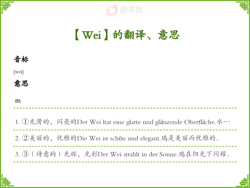 ②美丽的,优雅的Die Wei ist schön und elegant.瑦是美丽而优雅的。