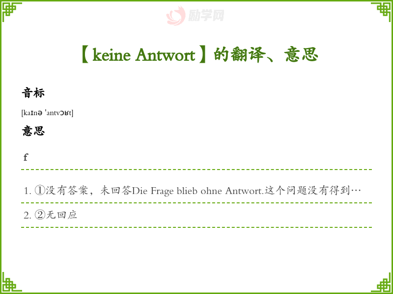 【keine Antwort】是什么意思、字义解释