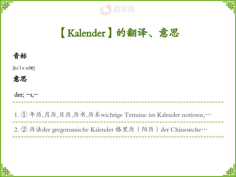 Kalender德语的中文翻译、意思