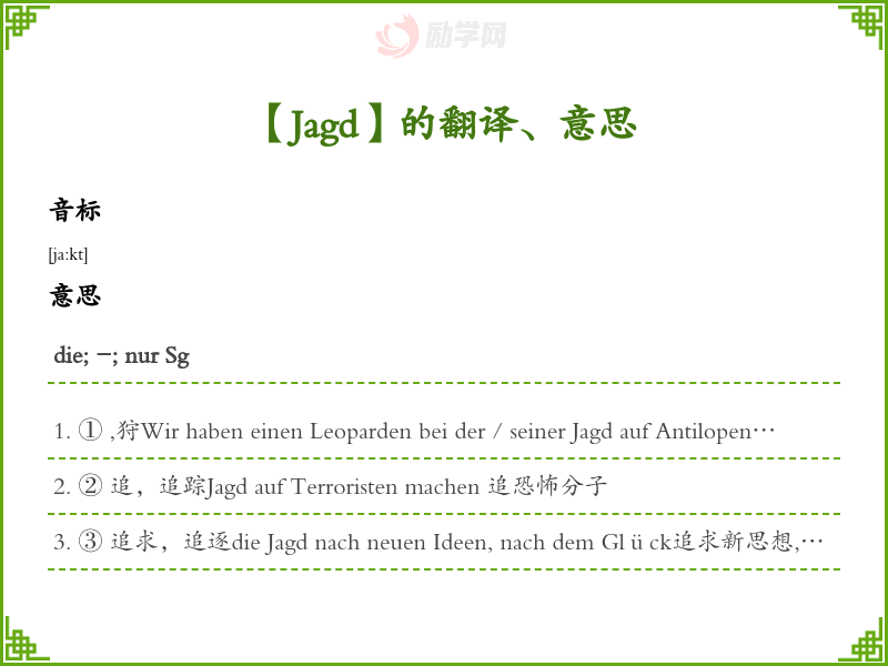 Jagd德语的中文翻译、意思