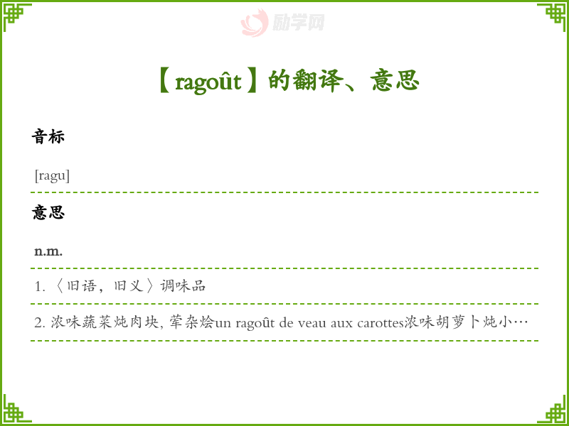 ragoût法语的中文翻译、意思