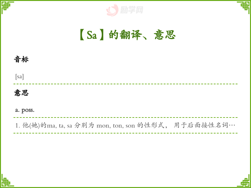 Sa法语的中文翻译、意思