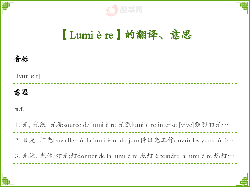 Lumière法语的中文翻译、意思