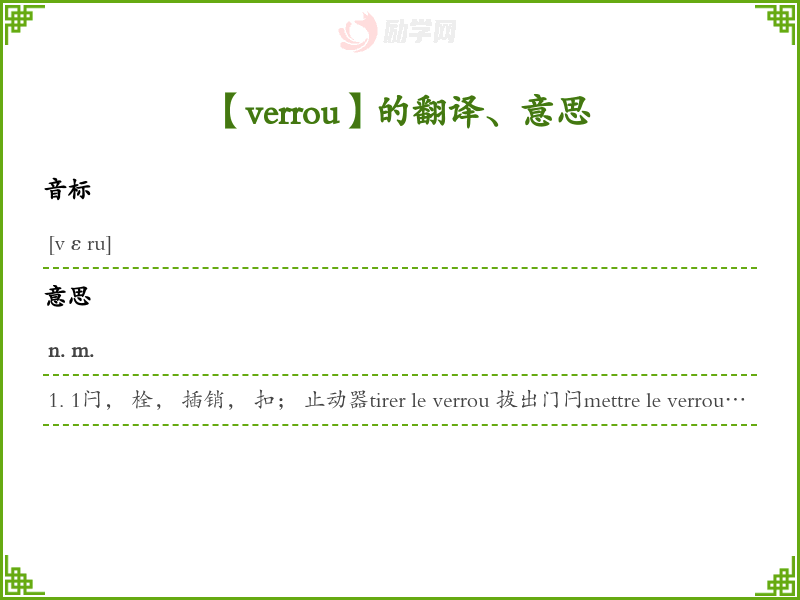 verrou法语的中文翻译、意思