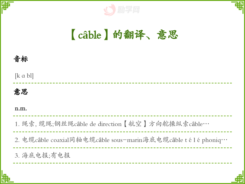 【câble】 词源: 词根: 动词变化: 名词变化: 近义词: 想词