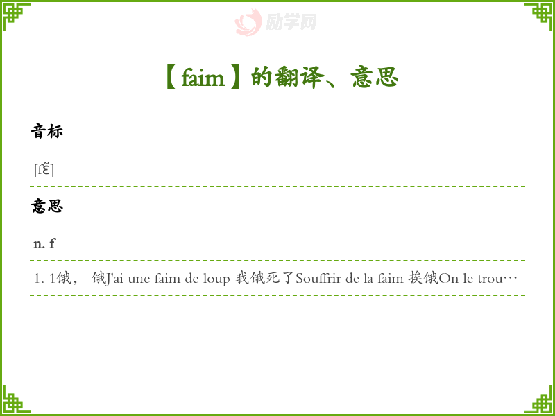 faim法语的中文翻译、意思