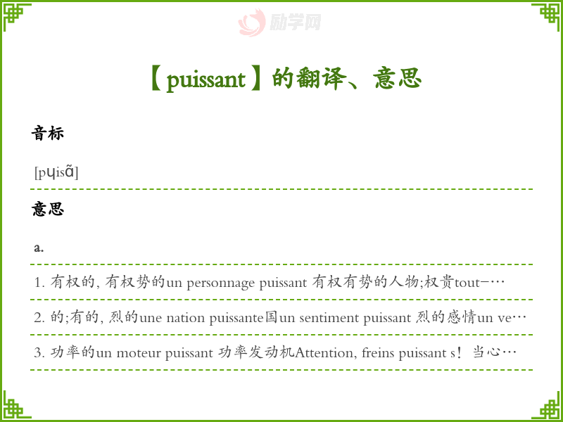 puissant法语的中文翻译、意思