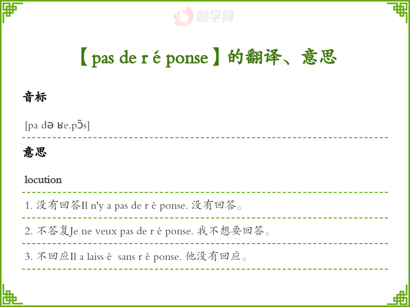 【pas de réponse】是什么意思、字义解释