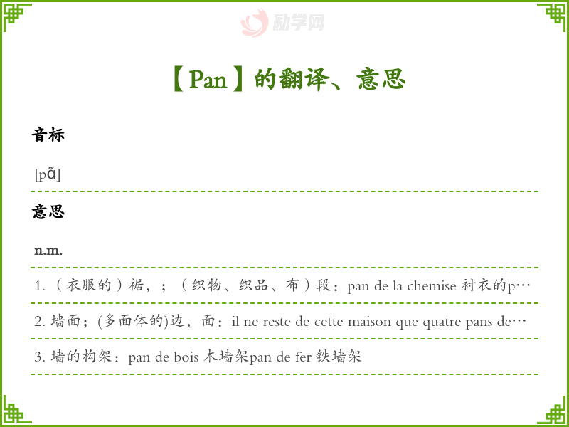 Pan法语的中文翻译、意思