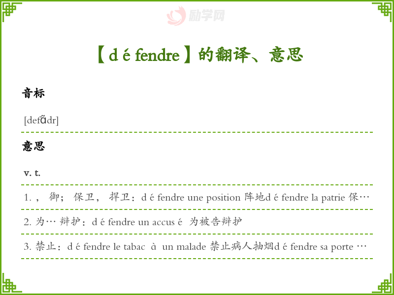 【défendre】是什么意思、字义解释
