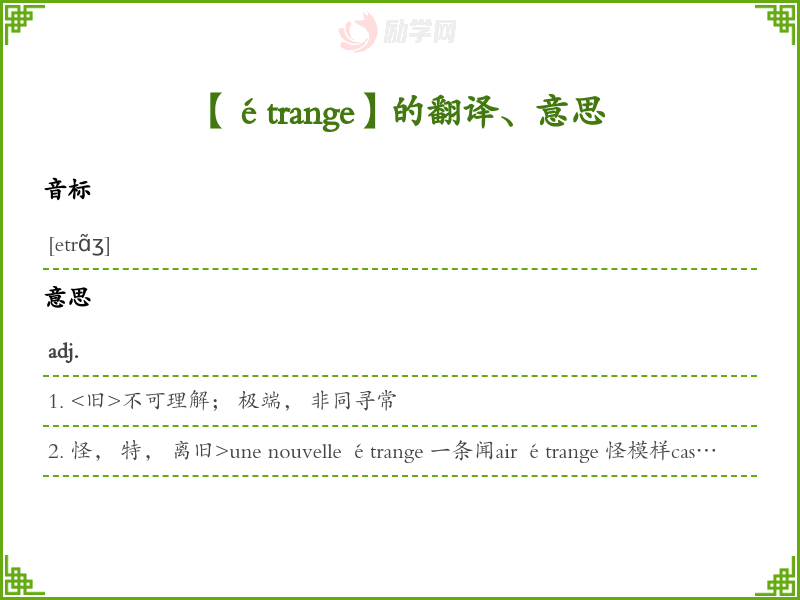 étrange法语的中文翻译、意思