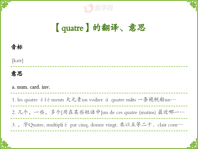 quatre法语的中文翻译、意思