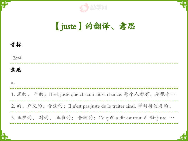 【juste】是什么意思、字义解释