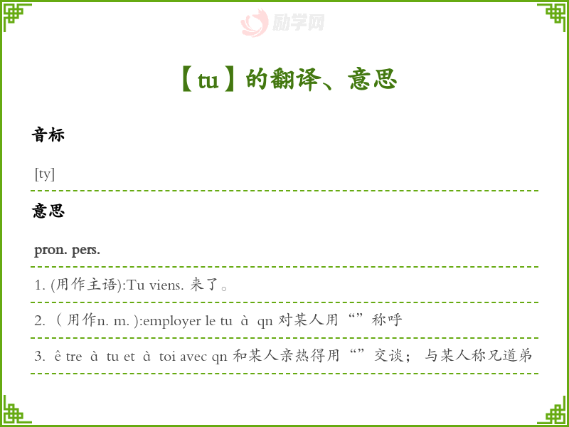 tu法语的中文翻译、意思