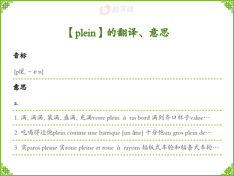 plein法语的中文翻译、意思