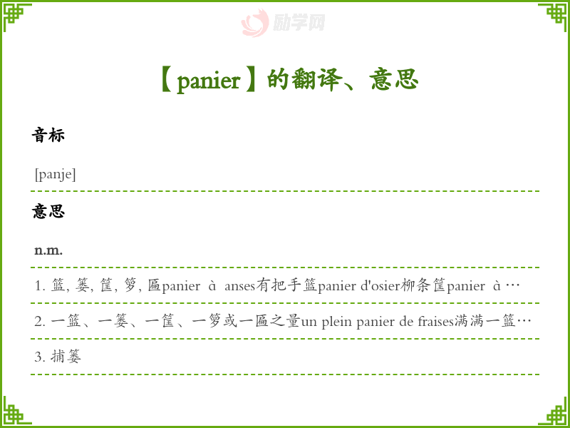 【panier】是什么意思、字义解释