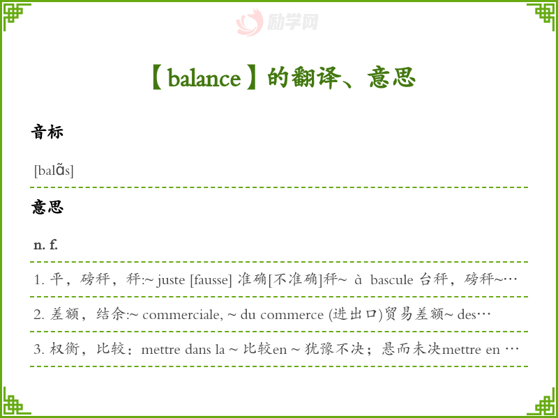 balance法语的中文翻译、意思