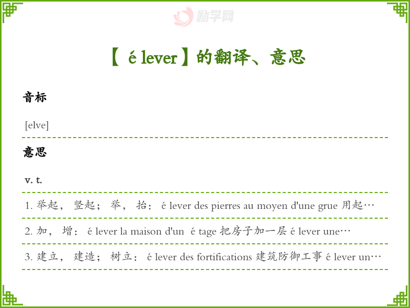 élever法语的中文翻译、意思