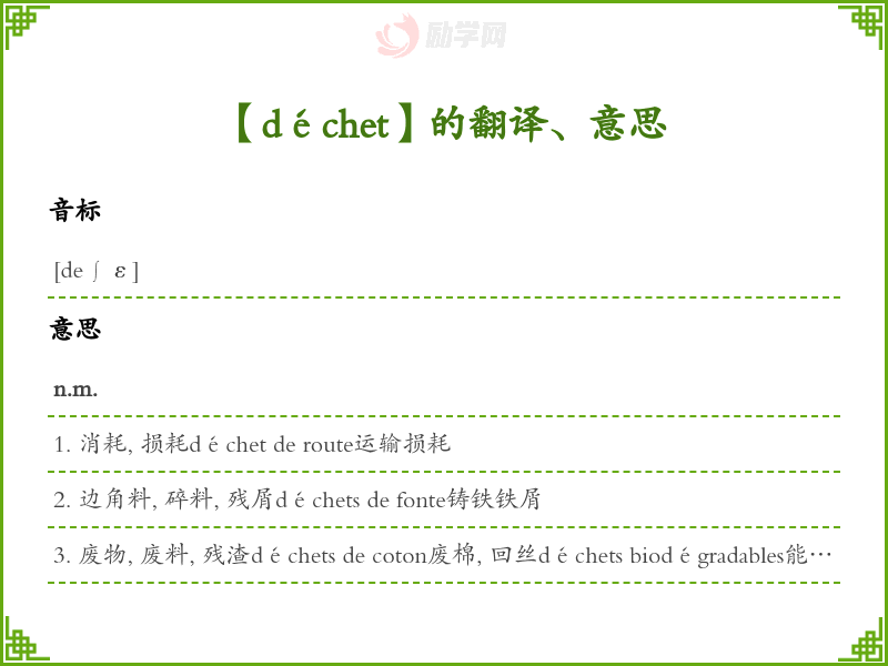 déchet法语的中文翻译、意思