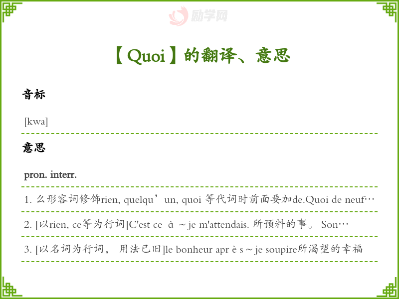 Quoi法语的中文翻译、意思