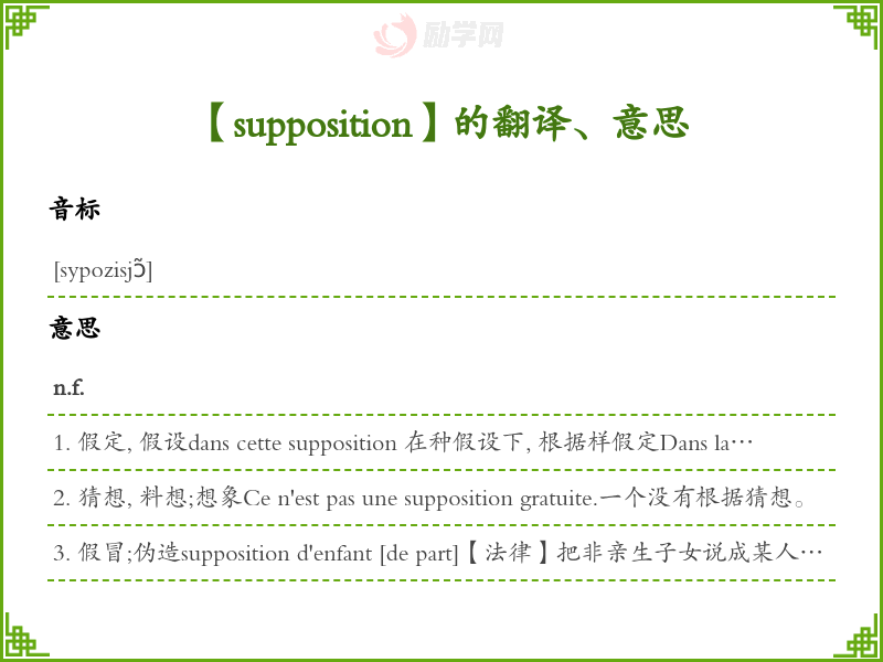 supposition法语的中文翻译、意思