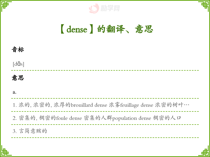dense法语的中文翻译、意思