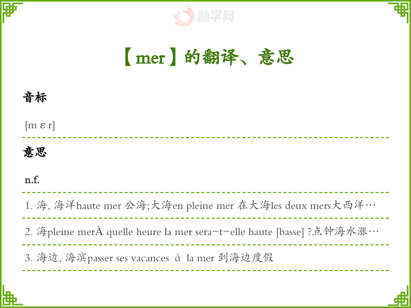 mer法语的中文翻译、意思