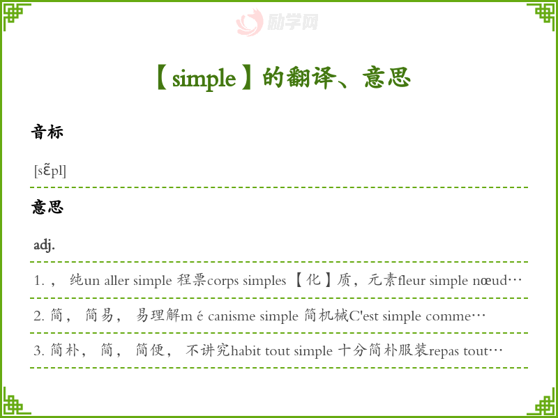 simple法语的中文翻译、意思