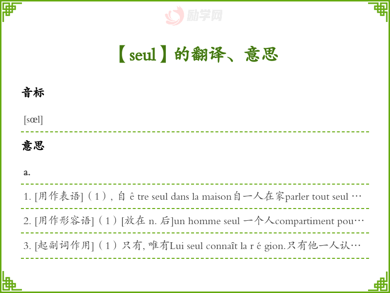 seul法语的中文翻译、意思