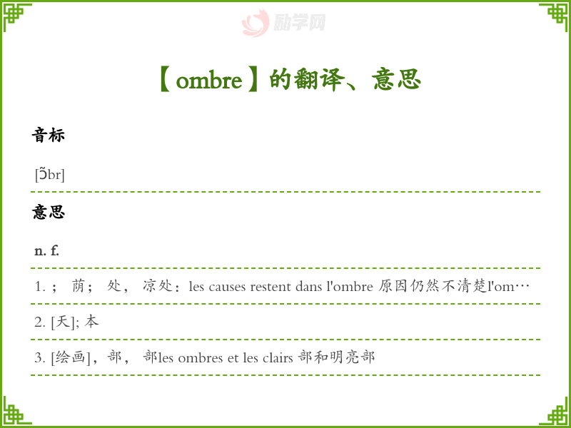 ombre法语的中文翻译、意思