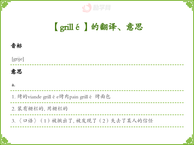 【grillé】是什么意思、字义解释