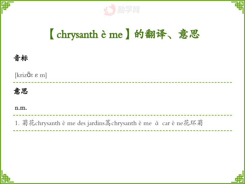 1. 菊花chrysanthème des jardins蒿chrysanthème à carène花环菊