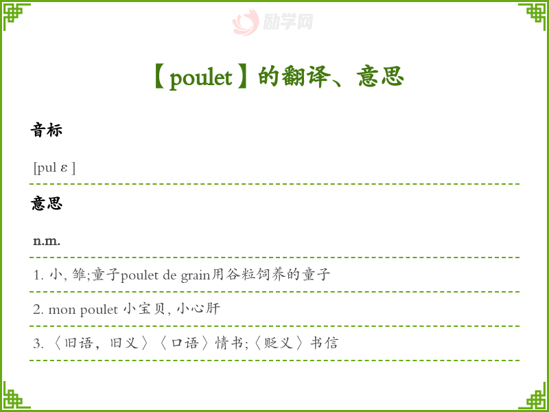 poulet法语的中文翻译、意思