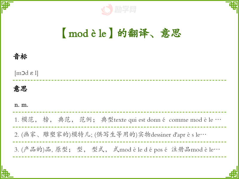 【modèle】是什么意思、字义解释