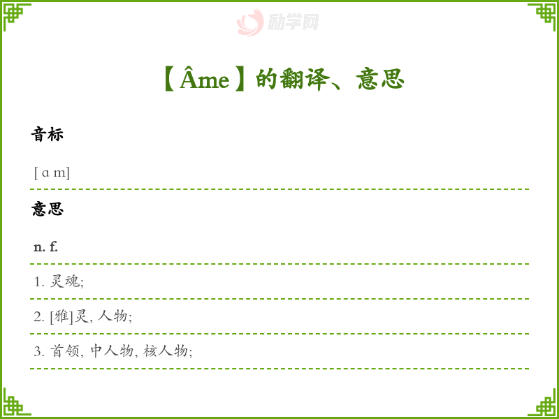 【Âme】 词源: 词根: 近义词: 反义词: 联想词