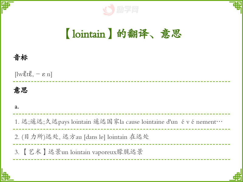 lointain法语的中文翻译、意思