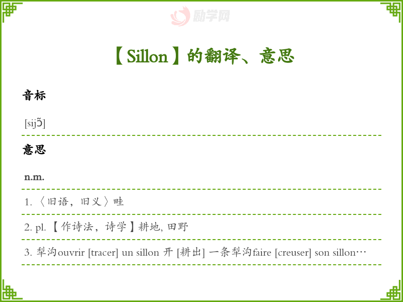 Sillon法语的中文翻译、意思