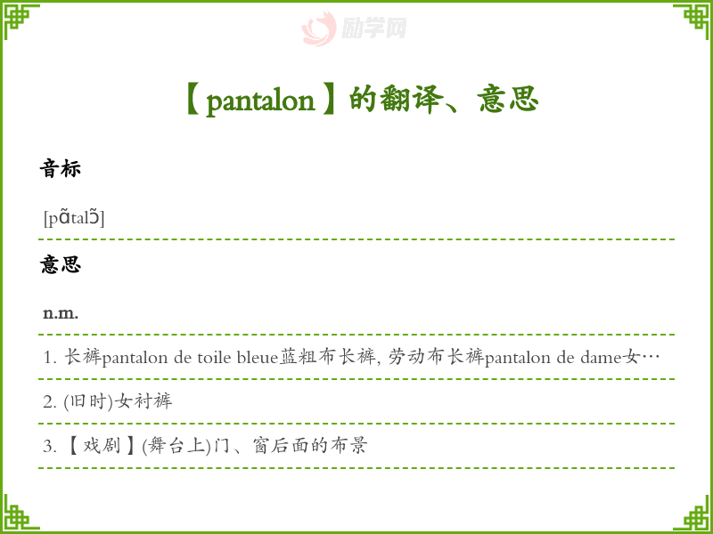 【pantalon】是什么意思、字义解释