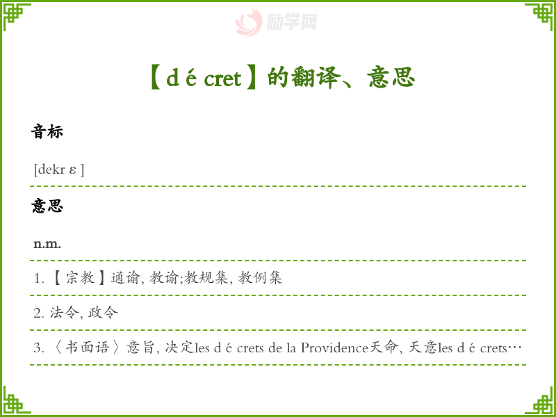【décret】是什么意思、字义解释
