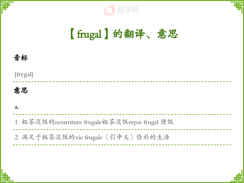【frugal】是什么意思、字义解释