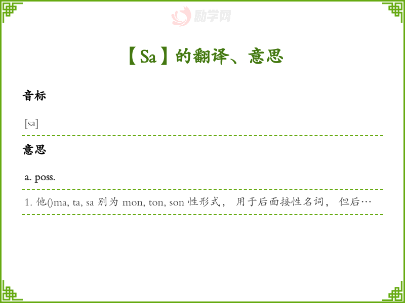 Sa法语的中文翻译、意思