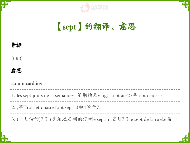 sept法语的中文翻译、意思