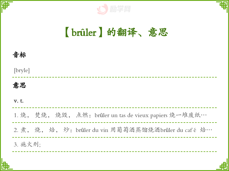 【brûler】 派生: 联想: 用法: 近义词: 反义词: 联想词