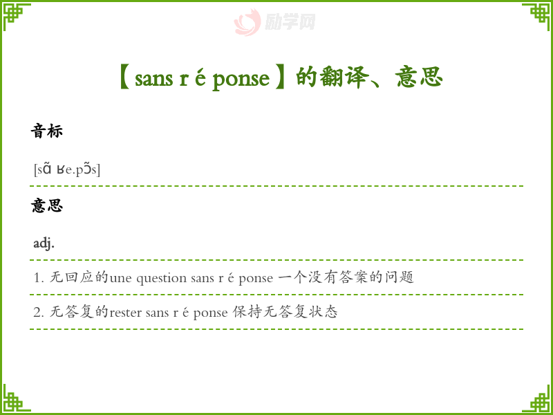 【sans réponse】是什么意思、字义解释